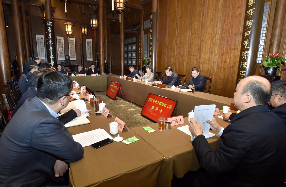 隨后,張寶娟在盧氏古宅慶云堂主持召開世界美食之都建設(shè)工作座談會(huì),葉善祥董事長匯報(bào)了康山鹽商文化園目前的運(yùn)營情況,以及城控集團(tuán)在世界美食之都建設(shè)中所做的工作。