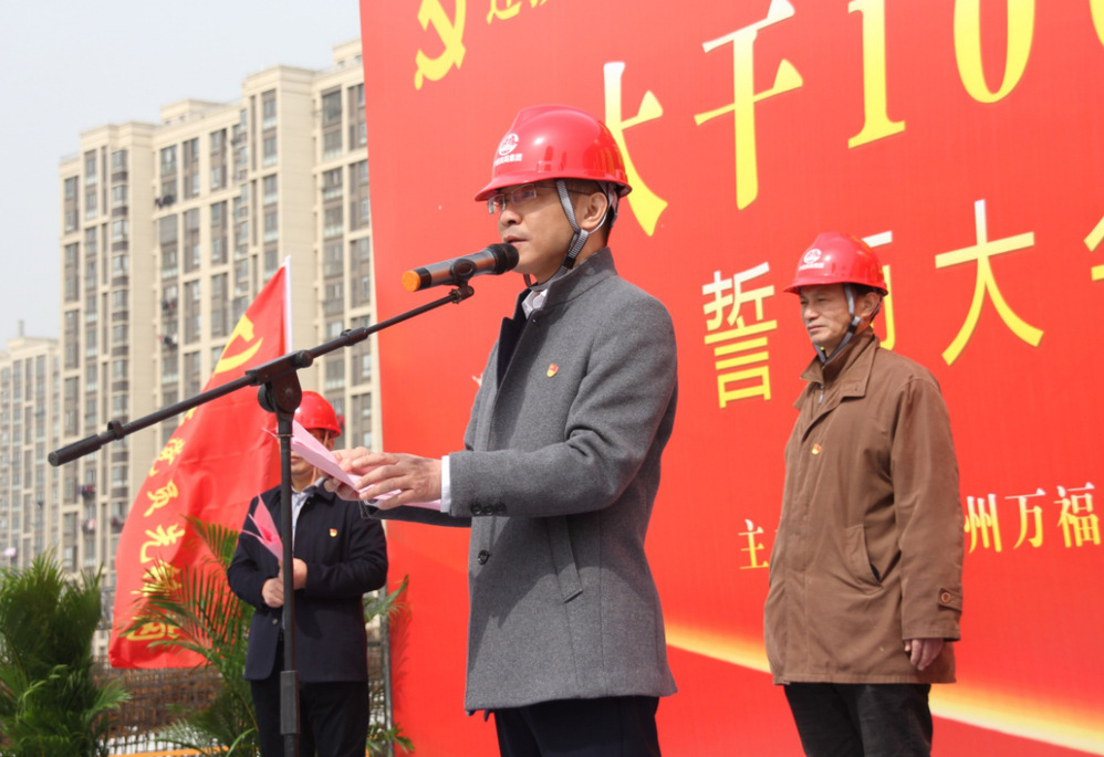“大干100天,獻(xiàn)禮100周年”勞動(dòng)競(jìng)賽將以建設(shè)管理為主線,以質(zhì)量創(chuàng)優(yōu)為核心,以安全生產(chǎn)為重點(diǎn),以確保工期為目標(biāo),以創(chuàng)新創(chuàng)效為動(dòng)力,以項(xiàng)目黨建為引領(lǐng),在確保施工安全和工程質(zhì)量的前提下,主要圍繞“安全生產(chǎn)、工程質(zhì)量、工程管理、創(chuàng)新創(chuàng)效、廉潔自律、項(xiàng)目文化及疫情防控七個(gè)方面開展?;顒?dòng)中,各參建單位進(jìn)行了莊嚴(yán)的宣誓,參加活動(dòng)的領(lǐng)導(dǎo)為“黨員先鋒隊(duì)”“青年突擊隊(duì)”進(jìn)行了授旗,萬福公司及參賽單位負(fù)責(zé)人作了表態(tài)發(fā)言,市總工會(huì)勞經(jīng)部部長(zhǎng)賀光明、城控集團(tuán)黨委副書記徐飛在活動(dòng)中作了動(dòng)員講話。