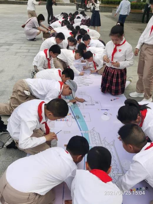 在雄壯的國歌中,活動(dòng)徐徐拉開帷幕。揚(yáng)州軍分區(qū)護(hù)旗隊(duì),高舉國旗正步入場,并將國旗傳遞給少先隊(duì)員代表。隨后廣場響起清亮的少年先鋒隊(duì)隊(duì)歌:“我們是共產(chǎn)主義接班人,繼承革命先烈的光榮傳統(tǒng)......”,錚錚歌詞、響徹全場,回憶青春、心潮澎湃。最后,資產(chǎn)公司、廣陵消防救援站、團(tuán)工委、東關(guān)街道婦聯(lián)等單位代表共同在噴繪上進(jìn)行沙畫作業(yè),表達(dá)心中對建黨百年的衷心祝愿,少先隊(duì)員們也用手中彩筆描繪東關(guān)錦繡風(fēng)光。