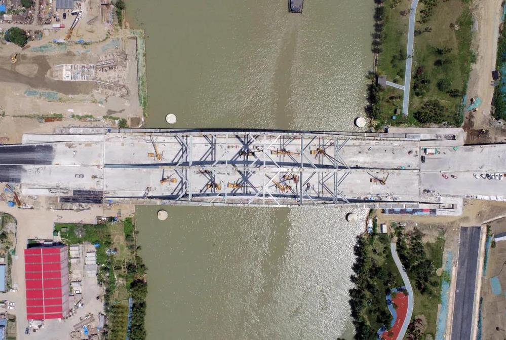跨京杭運(yùn)河大橋是萬??焖俾饭こ讨仉y點(diǎn)及控制性節(jié)點(diǎn)工程,施工難度大、精度要求高,決定著整個(gè)工程關(guān)門工期。施工過程中涉及的鋼棧橋施工、深基坑施工及上部結(jié)構(gòu)吊裝均為超過一定規(guī)模的危險(xiǎn)性較大的分部分項(xiàng)工程,施工安全風(fēng)險(xiǎn)高。為確保按期完成,錢俊多次組織召開專題推進(jìn)會(huì),倒排工期,掛圖作戰(zhàn),制定詳細(xì)的施工計(jì)劃,出現(xiàn)偏差及時(shí)分析并修正調(diào)整;同時(shí),加強(qiáng)與海事、航道、船閘等部門的對(duì)接協(xié)調(diào),確保鋼構(gòu)件及時(shí)進(jìn)場、及時(shí)封航吊裝。施工期間,每天安排專人對(duì)施工部位進(jìn)行巡查,檢查措施落實(shí)情況,針對(duì)發(fā)現(xiàn)的問題及時(shí)組織各方商討最佳解決方案,優(yōu)化施工工藝。在全體參建人員的共同努力下,2021年1月27日,跨京杭運(yùn)河大橋拱肋全部合龍;2021年4月16日,跨京杭運(yùn)河大橋橋面板合攏......目前,萬??焖俾饭こ陶凑占榷ㄓ?jì)劃順利推進(jìn),工程形象進(jìn)度完成率近90%。