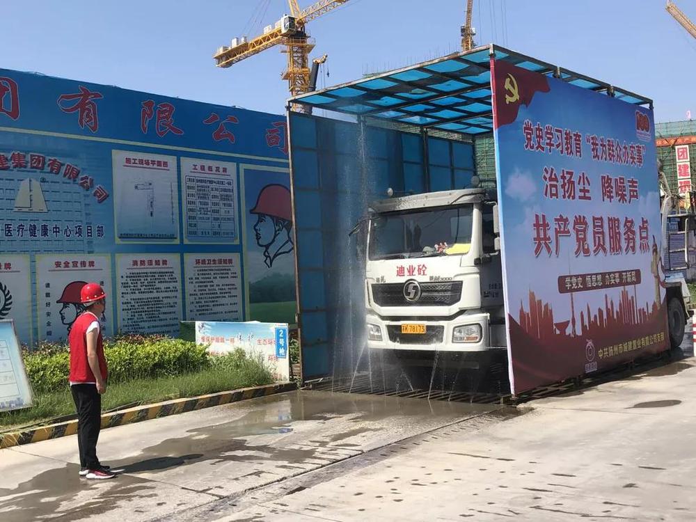 活動中,黨員志愿者兵分兩路出發(fā),一處向周邊群眾和施工作業(yè)人員分發(fā)宣傳我公司為保護城市生態(tài)環(huán)境底色開展的一系列揚塵降噪舉措;另一處志愿者在項目出入口處指揮檢查進出車輛沖洗情況,嚴禁拖泥帶污車輛駛出場外,影響周邊環(huán)境衛(wèi)生,造成城市道路污染。目前我公司在建項目所有建筑工地均增添灑水降塵設施,工地實施6個100%治理標準,即:施工現(xiàn)場圍擋率、工地物料堆放覆蓋率、路面硬化率、車輛沖洗率、濕法作業(yè)率、運土車輛密閉率均達到100%。隨后,黨員志愿者們在項目負責人的帶領(lǐng)下見證了“智慧工地”系統(tǒng)和BIM-VR安全教育系統(tǒng)在實際工作中的應用,“智慧工地”的運用實現(xiàn)了隨時隨地可對項目安全、質(zhì)量、揚塵防控及進度等各方面的全覆蓋無死角管理。大家在感慨國家科技水平日新月異進步的同時也增強了學好本領(lǐng)多為群眾辦實事的思想自覺和行動自覺。