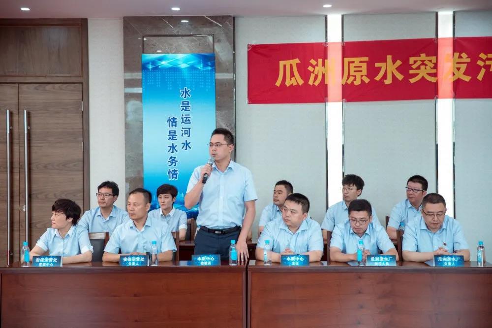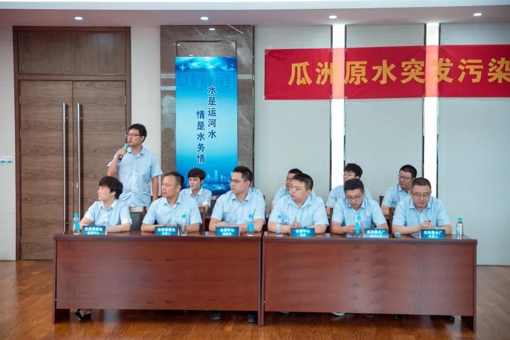 推演模擬長江瓜洲段上游突發(fā)沉船事件可能導(dǎo)致的水體油污污染,以VCR推送場景+桌面推演的方式進(jìn)行。原水污染突發(fā)情況發(fā)生后,在應(yīng)急指揮部的指揮下,供水調(diào)度中心如何進(jìn)行調(diào)度?水質(zhì)檢測中心如何監(jiān)測水質(zhì)?涉及到的水廠具體應(yīng)如何操作?各職能部門如何執(zhí)行應(yīng)急預(yù)案?根據(jù)演練主持人提出的問題和VCR推送出的不同場景,各部門有關(guān)負(fù)責(zé)人和崗位操作人員一一回答處置方法和處置流程,經(jīng)過有效處置,水源突發(fā)污染隱患和相關(guān)危險(xiǎn)因素已成功消除,“緊急狀態(tài)”解除后,各水廠恢復(fù)正常生產(chǎn)。參演人員協(xié)作分工,有效配合,出色完成了推演處置任務(wù)。