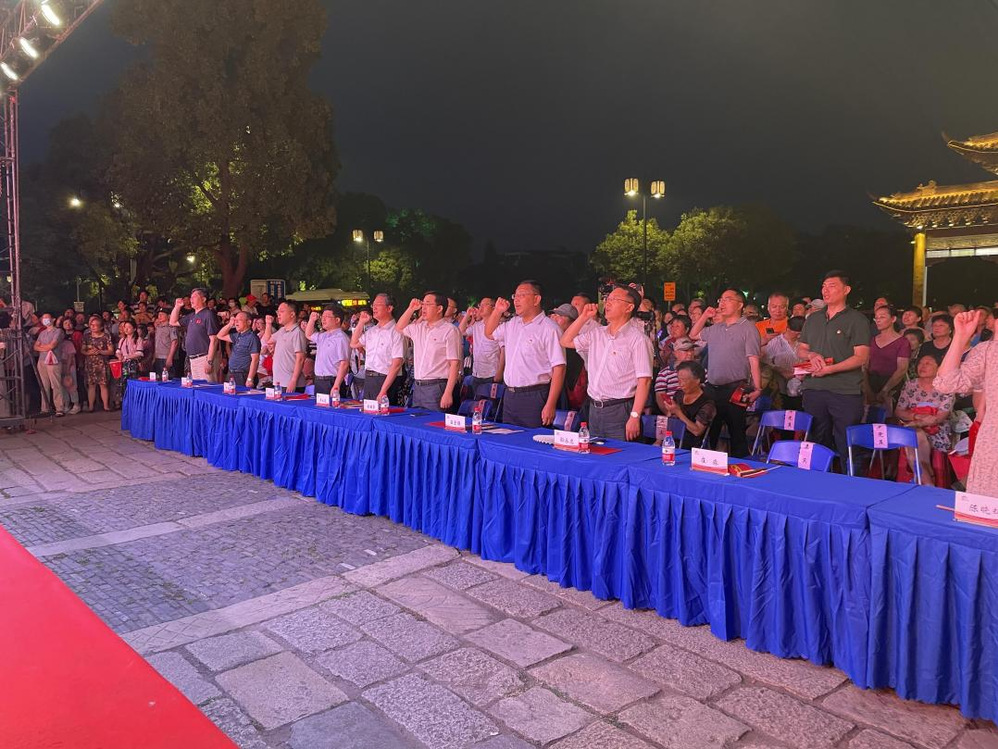 為慶祝中國共產(chǎn)黨成立100周年,進(jìn)一步推進(jìn)黨史學(xué)習(xí)教育深度融入古城文化,構(gòu)建共治共建共享的社會(huì)治理新格局,打造由黨建領(lǐng)航、聯(lián)盟助力的歷史文化旅游景區(qū)。6月29日晚,在東關(guān)街東門廣場(chǎng),由市名城公司和東關(guān)街道黨工委牽頭發(fā)起,市名城公司機(jī)關(guān)支部、旅發(fā)支部、長(zhǎng)樂客棧支部協(xié)同10家單位黨支部,共同舉辦主題為《永遠(yuǎn)跟黨走·起航新征程》慶祝建黨100周年文藝演出暨東關(guān)歷史文化旅游區(qū)黨建聯(lián)盟的成立儀式。省水文水資源勘測(cè)局揚(yáng)州分局領(lǐng)導(dǎo)、市稅務(wù)局領(lǐng)導(dǎo)、廣陵區(qū)委組織部、宣傳部領(lǐng)導(dǎo)、市名城公司領(lǐng)導(dǎo)、東關(guān)街道相關(guān)領(lǐng)導(dǎo)以及其他共建單位相關(guān)領(lǐng)導(dǎo)共同出席儀式。