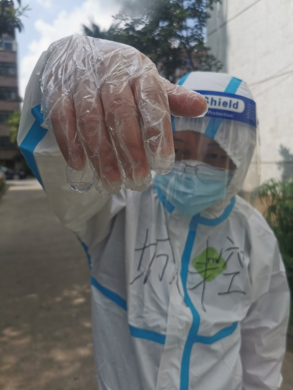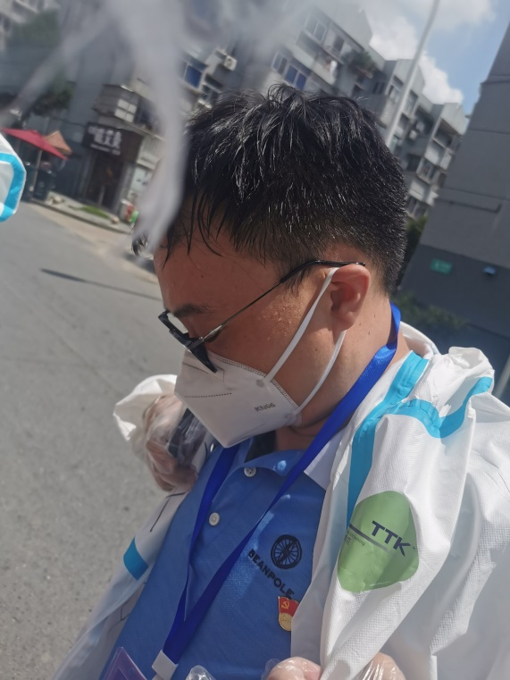 志愿者安鵬夫妻二人都是國資系統(tǒng)內(nèi)的員工,本次得知要征集一線抗疫志愿者,他們立即響應(yīng)號(hào)召報(bào)了名。為了沒有后顧之憂,他們把2歲的孩子托付給了家中的老人。根據(jù)國資委統(tǒng)一調(diào)配,國資系統(tǒng)一天內(nèi)分派三批志愿者輪流上崗,安鵬工作結(jié)束后,恰逢妻子過來接班。短暫的相會(huì),他們倆互相打氣、互相叮囑,“在里面再熱防護(hù)服也不要敞口,喝水前用酒精先把手消一下毒?!?/span>
