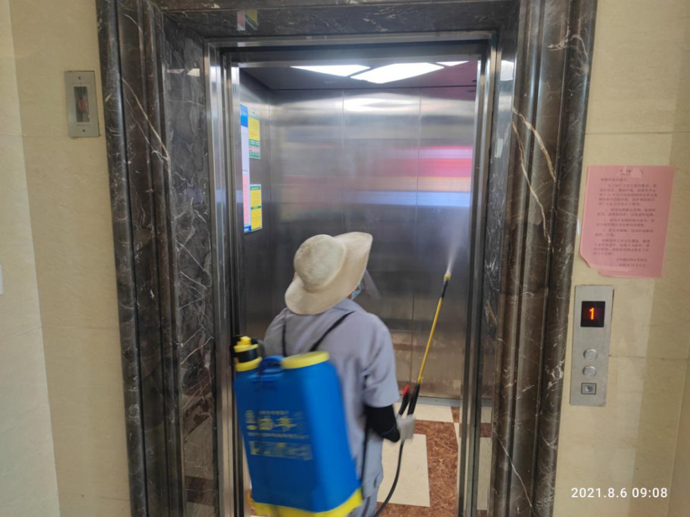 而在京杭融園小區(qū)內(nèi),保潔人員也各就各位,各司其職,認(rèn)真細(xì)致的做好每日消殺工作。室內(nèi)的電梯、樓層門廳、入戶大廳和室外的垃圾桶,垃圾池,是重點(diǎn)消殺區(qū)域。健身區(qū)域、兒童游樂區(qū)和公示欄前雖然已經(jīng)幾乎沒有人,但也不能放松,還是要進(jìn)行噴灑。警戒線周圍更是需要反復(fù)消殺,加密消殺。