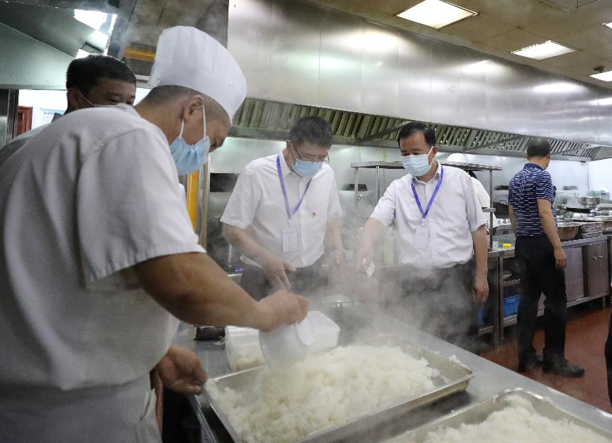 檢查過(guò)程中,葉善祥聽取了長(zhǎng)樂(lè)客棧負(fù)責(zé)人關(guān)于疫情防控工作匯報(bào),詳細(xì)了解封閉管理期間滯留旅客和防疫人員的住宿和三餐安排,以及他們的核酸檢測(cè)情況。他指出,要落實(shí)好食品安全管理,嚴(yán)把食品安全關(guān),提倡無(wú)接觸收貨,加強(qiáng)庫(kù)存食品安全管理,及時(shí)清理過(guò)期變質(zhì)的食品和原料;要落實(shí)好環(huán)境衛(wèi)生管理,每日做好公共區(qū)域、餐飲區(qū)域消殺,嚴(yán)格餐具衛(wèi)生管理,強(qiáng)化無(wú)接觸送餐,用餐結(jié)束后對(duì)所有餐具進(jìn)行全方位的清潔和消毒;要落實(shí)好人員管理,做好宣傳以及心理疏導(dǎo)工作,切實(shí)關(guān)心封閉管理人員的心理和生活,做好后勤保障。