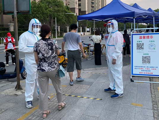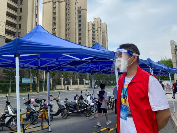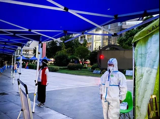 “大家保持一米距離,按照地上貼的標識排隊,核酸采樣很快請大家稍安勿躁!” 在揚州東區(qū)附中核酸檢測點,有一群人頂著烈日穿梭在人群中,拿著大喇叭維持秩序,幫助市民完成掃碼注冊,引導群眾有序參檢,他們是來自揚州市政管網(wǎng)公司890服務隊的志愿者。