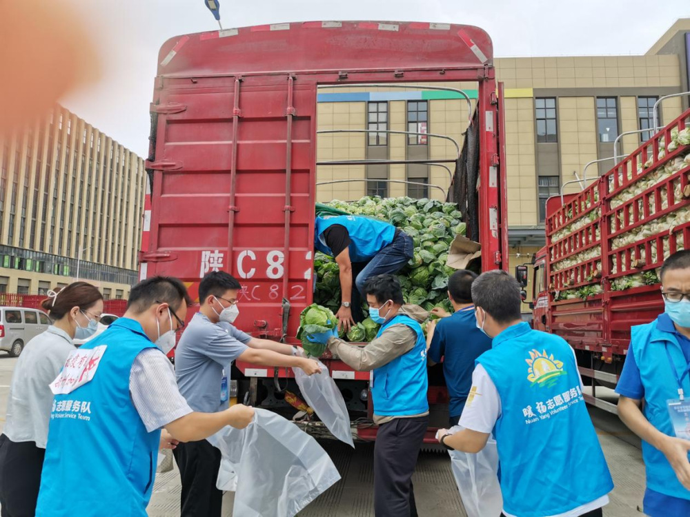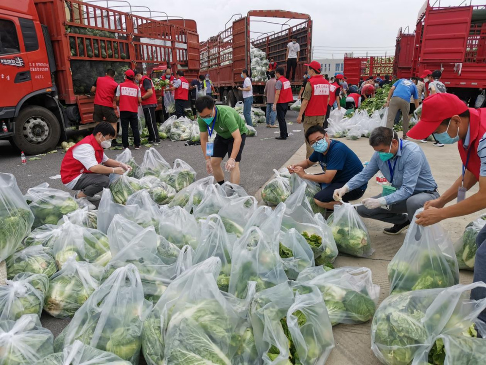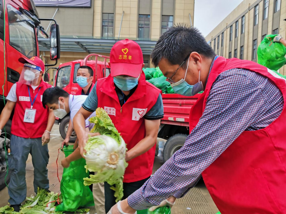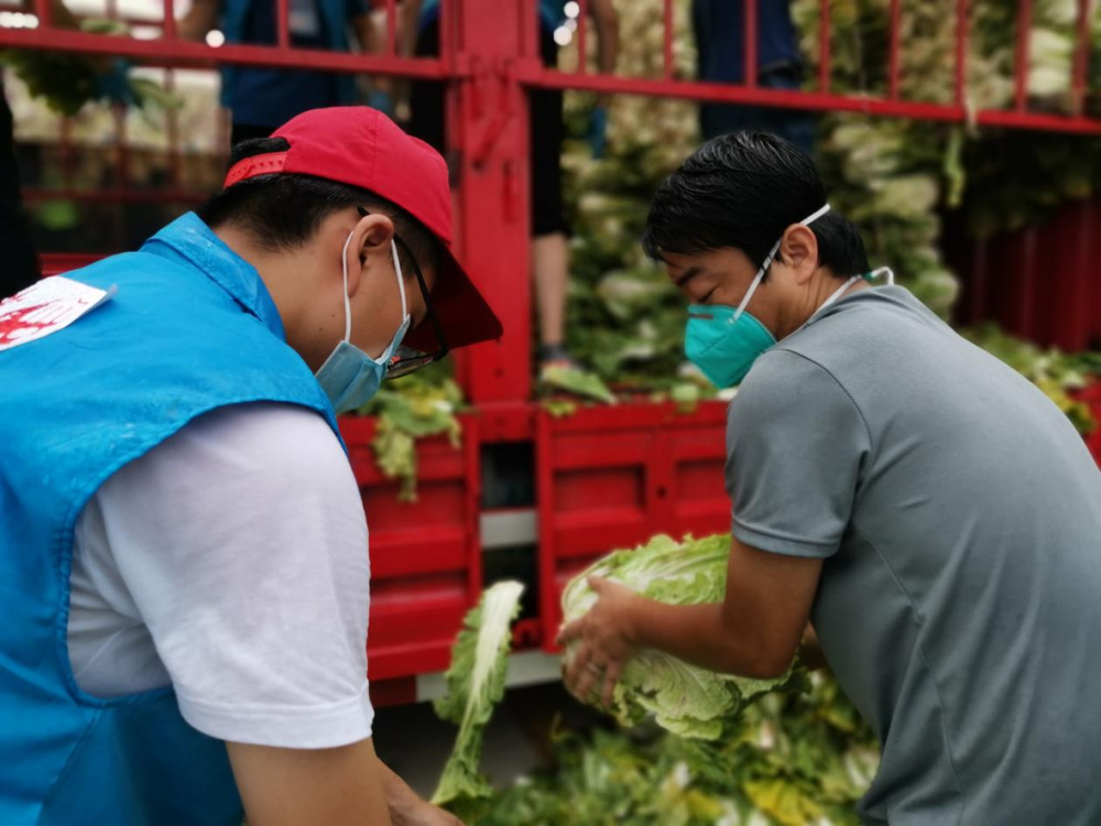 由于蔬菜數(shù)量龐大,為保障居民能夠及時(shí)拿到“愛心菜”,13:30,城控集團(tuán)又從各志愿服務(wù)小組緊急抽調(diào)50名志愿者奔赴萬噸冷鏈進(jìn)行現(xiàn)場(chǎng)支援。