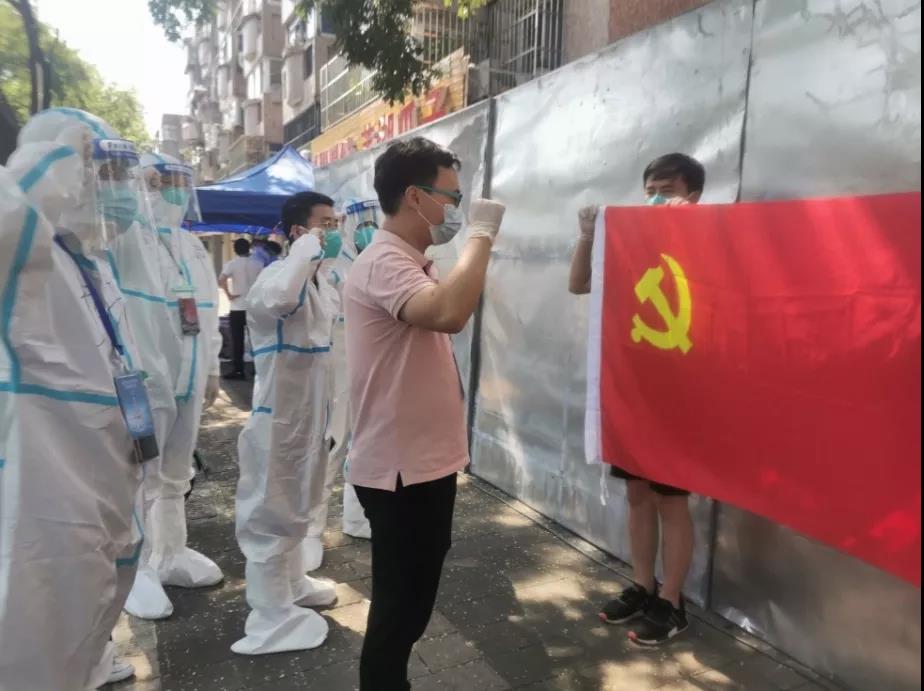 為更好地在抗疫一線發(fā)揮基層黨組織的戰(zhàn)斗力和黨員的先鋒模范作用,8月8日,第一批次出征高風(fēng)險地區(qū)——武塘社區(qū)的志愿服務(wù)先鋒部隊經(jīng)集團(tuán)黨委批準(zhǔn),率先成立了抗疫志愿服務(wù)行動臨時黨支部,讓黨旗第一時間飄揚(yáng)在疫情防控第一線。