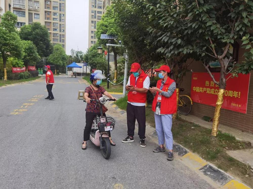 執(zhí)黨旗,披紅甲,“疫”往無前。名城公司的志愿者歸編于城控集團志愿服務(wù)第7組,經(jīng)過志愿服務(wù)相關(guān)制度和基本個人防護知識的學(xué)習(xí)后,于8月7日的清晨,小隊全員著紅馬甲正式進入掛包小區(qū)——天福花園,開始了志愿服務(wù)工作。為更好地在抗疫一線發(fā)揮基層黨組織的戰(zhàn)斗堡壘和黨員的先鋒模范作用,經(jīng)駐地街道黨工委批準(zhǔn),與轄區(qū)合作組建了臨時黨支部,讓黨旗飄揚在疫情防控的第一線。