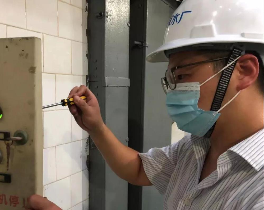 吳俊趕到泵房,經(jīng)過仔細(xì)查找,發(fā)現(xiàn)由于啟動按鈕老化,按鈕接線端子因老化松動,組員提出可以用絕緣膠帶包裹修復(fù)的方案?!安恍?這個可容不得一絲馬虎,既已老化就要換新的!”他當(dāng)機(jī)立斷,一路小跑從倉庫拿出新按鈕趕緊更換,在悶熱的泵房內(nèi)他的額頭上布滿了汗水不停地滴落?!敖K于換好了!” 當(dāng)聽到電機(jī)啟動一聲長鳴,水泵轟隆隆運(yùn)轉(zhuǎn)了起來,機(jī)組終于恢復(fù)了正常,他高興地?fù)]了揮手,組員們看見他們的班長像剛從水里撈出來一樣,大家也紛紛笑了起來。在戰(zhàn)疫情、保生產(chǎn)的形勢下,吳俊一直保持著高度警惕,一邊做廠區(qū)疫情防控工作,一邊時刻留心設(shè)備運(yùn)行狀況,做好供水的“源頭哨兵”。