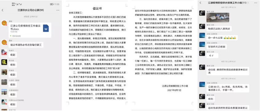 疫情就是命令,保供就是責(zé)任,黨員就是旗幟。為保障特殊時(shí)期區(qū)域供水的安全,破解封閉管控帶來(lái)的工作難題,江源公司黨支部迅速成立疫情防控與供水保障工作小組,積極響應(yīng)上級(jí)黨委號(hào)召,向全體職工轉(zhuǎn)發(fā)《江源公司疫情防控工作倡議書》,動(dòng)員基層黨員、業(yè)務(wù)骨干、年輕同志就地轉(zhuǎn)化為屬地保障人員,主動(dòng)配合當(dāng)?shù)厣鐓^(qū)、村組做好本職工作,自覺承擔(dān)起所在轄區(qū)內(nèi)的疫情防控和供水保障責(zé)任。與此同時(shí),在長(zhǎng)江水務(wù)辦公室、安保運(yùn)營(yíng)處的協(xié)助下,第一時(shí)間將防護(hù)服等物資送到了江源公司各鄉(xiāng)鎮(zhèn),為各地水工師傅們進(jìn)入中高風(fēng)險(xiǎn)地區(qū)實(shí)施搶修解決了燃眉之急。