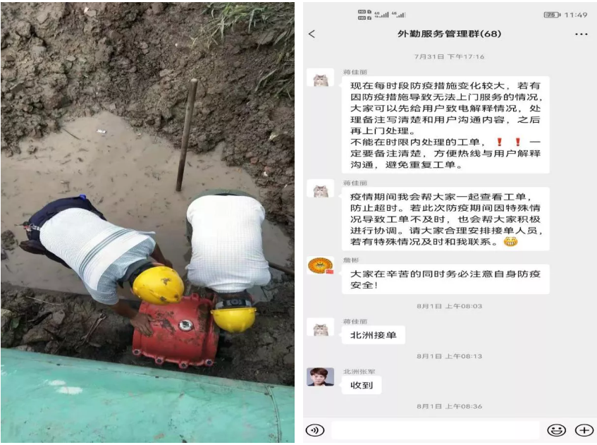 在江源公司黨支部,像杭寶慶、潘大余、王鵬鵬這樣沖鋒在保供一線的黨員同志還有很多,正是因?yàn)樗麄兊谝粫r(shí)間樹黨旗、亮身份,主動(dòng)扛起責(zé)任,敢于擔(dān)當(dāng)作為,江源公司才能堅(jiān)決落實(shí)上級(jí)部署,緊繃疫情防控和供水保障兩根弦一刻不松,才能真正做到堅(jiān)持疫情期間供水服務(wù)不“打烊”、不“打折”。自8月1日至29日,江源公司共接到各類報(bào)修197起,完成搶修192起,除極個(gè)別無(wú)法進(jìn)入的高風(fēng)險(xiǎn)封閉區(qū)域搶修外,保質(zhì)保量完成了全部搶修任務(wù),切實(shí)保障區(qū)域供水安全,獲得廣大鄉(xiāng)鎮(zhèn)用戶稱贊。