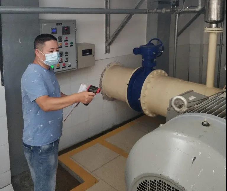 西湖增壓站共有5人駐站,陳堅宇、王皓宇、刁鑫磊、劉立天、田旭都是“80后”、“90后”的年輕人。他們每天保持著昂揚的工作斗志,認真測聽轟鳴的機組聲響是否異常,用心檢測電氣設備的運行狀態(tài),細心觀察水質(zhì)數(shù)據(jù)指標,同時嚴格落實疫情防控措施,做好消毒工作,保持環(huán)境整潔。駐守期間,陳堅宇發(fā)現(xiàn)甘泉增壓站外電線路有兩起故障,為不影響白天正常供水,他和維修人員在夜間11點30分搶修甘泉增壓站外電線路故障,經(jīng)過4個小時的奮戰(zhàn),在凌晨3點58分恢復設備運行。刁鑫磊和田旭巡視過程中發(fā)現(xiàn)西湖增壓站1#變頻器出現(xiàn)故障,果斷采取措施,斷開變頻器開關(guān),聯(lián)系調(diào)度更換機組,保障了生產(chǎn)安全。駐守期間,正逢陳堅宇的愛人過生日,刁鑫磊也正值新婚蜜月期,但他們選擇了舍小家、為大家,他們將對家人的思念轉(zhuǎn)化為工作的動力,齊心協(xié)力保障泵站安全運行。
