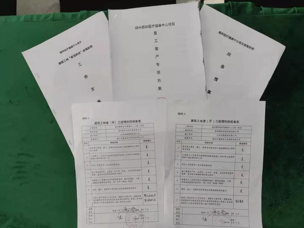 近日,置業(yè)公司積極與集團(tuán)各主管部門進(jìn)行對接,頤和項(xiàng)目部迅速籌備相關(guān)資料,梳理現(xiàn)場材料,組織施工人員,組織對現(xiàn)場塔吊、人貨電梯等大型設(shè)備的維護(hù)保養(yǎng),并開展了疫情安全教育培訓(xùn)和現(xiàn)場安全防疫全面檢查。9月6日,通過了屬地政府防疫核查。9月7日,項(xiàng)目一、二標(biāo)段均通過了江蘇省安監(jiān)平臺的網(wǎng)上復(fù)工審核,順利實(shí)現(xiàn)復(fù)工復(fù)產(chǎn)!