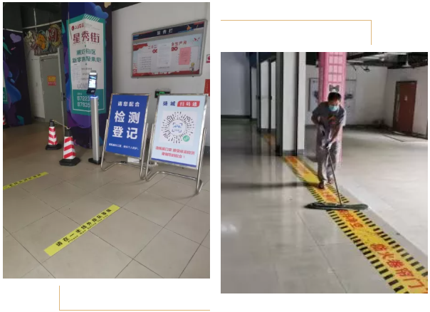 服務(wù)“警衛(wèi)員”,有序防控,安全復(fù)市。復(fù)工商戶日漸增加,嚴把出入管控必十分重要。為了保障顧客與商戶的安全,文昌百匯只保留地下街區(qū)星秀街8號進出口,同時在此處及停車場設(shè)置“揚城掃碼通”一體機,并張貼“掃碼通”二維碼,指導(dǎo)值守人員遵循“一掃二查三測量”的規(guī)定,在機器提示綠碼且體溫正常后才可進入街區(qū)。