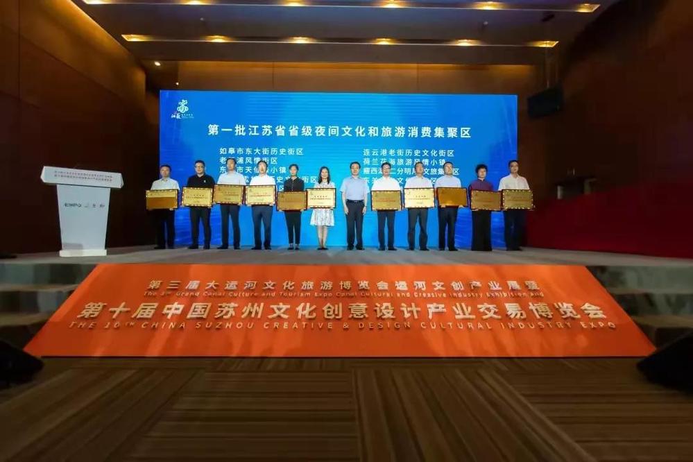 9月23日上午,江蘇省首批夜間文化和旅游消費(fèi)集聚區(qū)授牌儀式在蘇州舉行,省文化和旅游廳黨組書記、廳長楊志純出席并授牌,城控集團(tuán)東關(guān)歷史文化旅游區(qū)榮獲殊榮,城控集團(tuán)黨委委員、名城公司總經(jīng)理戴興春作為代表上臺領(lǐng)取獎牌。