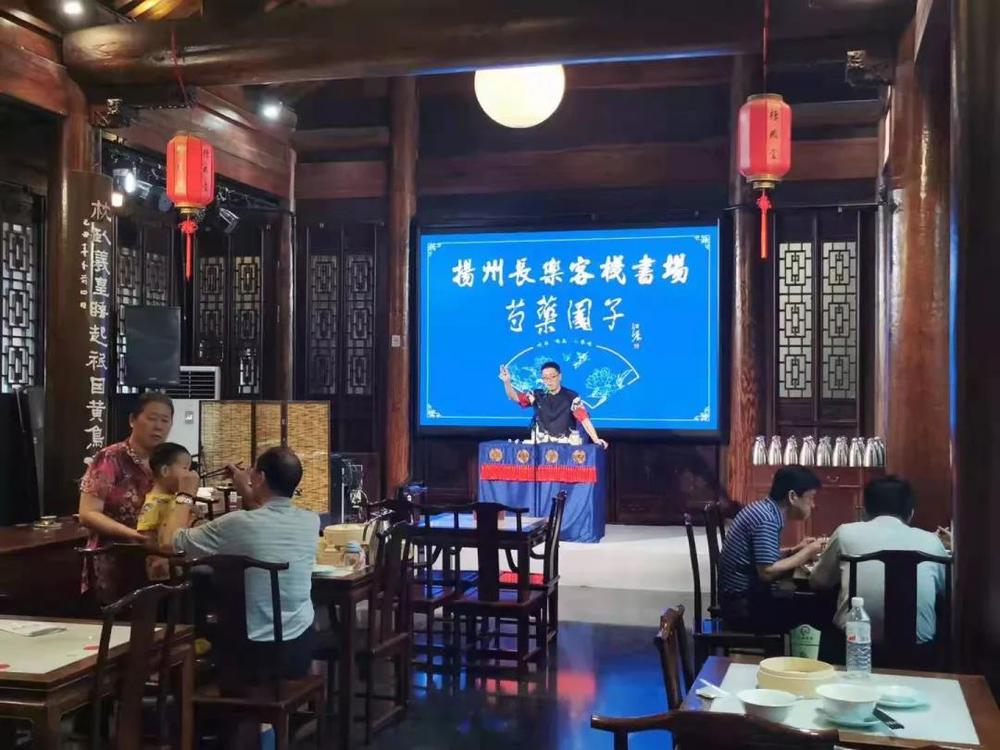 位于揚(yáng)州東關(guān)街的長(zhǎng)樂客棧,舊時(shí)是將軍、鹽商的府邸,置身其中,仿佛時(shí)光倒流。如今長(zhǎng)樂客棧被改造成園林式酒店,致力于傳承、發(fā)揚(yáng)淮揚(yáng)美食。10月1日國(guó)慶節(jié)當(dāng)天,“揚(yáng)州·淮揚(yáng)美食書場(chǎng)鹽商早茶品鑒”在長(zhǎng)樂客棧酒店棲鳳堂舉行。