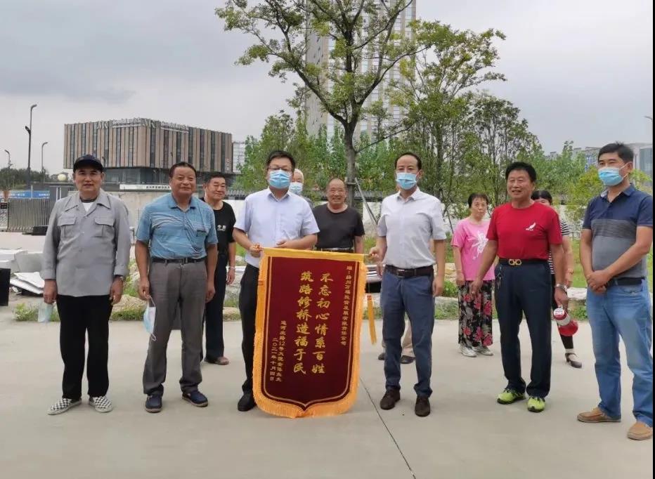 為了感謝萬福公司在實施快速路建設(shè)的同時,能夠用心用情幫助沿線居民解決民生問題,提升出行道路環(huán)境,揚鋼宿舍業(yè)主代表們送來了“不忘初心、情系百姓;筑路修橋、造福于民”的錦旗。