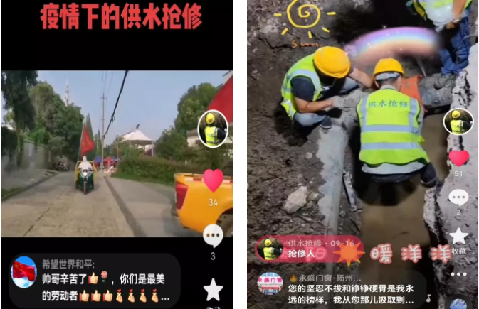 近年來,抖音、快手等短視頻APP盛行,成為許多人喜愛的應(yīng)用軟件,長江水務(wù)搶維修中心順勢而為,抓準(zhǔn)時機(jī),在以年輕人為主要受眾的抖音短視頻平臺上,注冊“水網(wǎng)先鋒”抖音號,用15秒晉升新“網(wǎng)紅”。通過全方位、多角度發(fā)布供水搶修事跡、好人好事、黨建亮點等即時新聞,在傳播長江水務(wù)正能量的同時,也能和網(wǎng)友通過平臺留言的方式迅速解決用水訴求,發(fā)揮了“抖音”客服的作用。