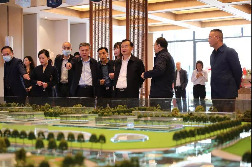 調(diào)研期間,葉善祥實地查看了建工科技園項目施工現(xiàn)場,詳細了解項目工程概況和建設(shè)進度。在建工科技園展示中心,葉善祥走到沙盤前,全面了解項目的整體形象與建設(shè)風格。