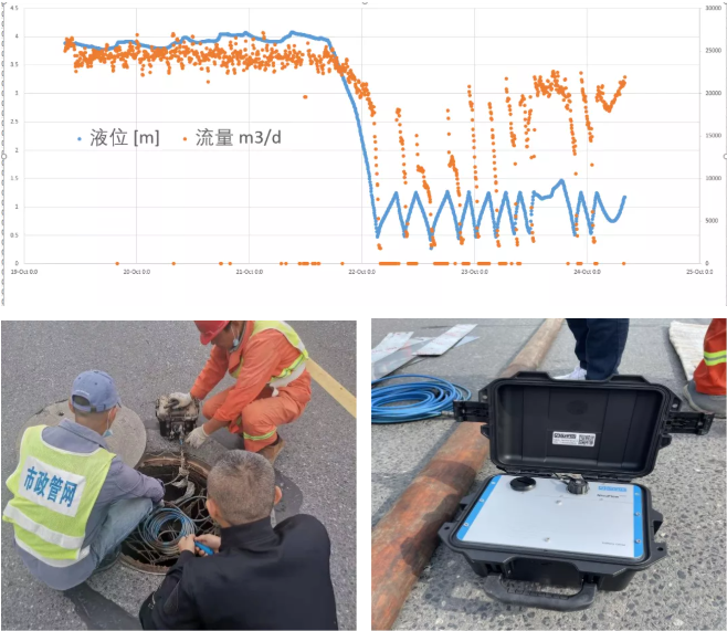 宏溪路泵站所覆蓋的污水收集區(qū)域由G328國(guó)道-趙家支溝-儀揚(yáng)河-潤(rùn)揚(yáng)南路合圍而成,總面積約5平方公里,市政管網(wǎng)公司于2021年6月啟動(dòng)揚(yáng)州高新區(qū)市政道路污水管網(wǎng)疏通養(yǎng)護(hù)工程,在現(xiàn)場(chǎng)排查過(guò)程中發(fā)現(xiàn),該區(qū)域市政道路管網(wǎng)存在污水運(yùn)行液位高、流速快、雨污混接點(diǎn)多等特點(diǎn),為精確分析、計(jì)算區(qū)域外水情況,科研小組采用國(guó)際先進(jìn)的區(qū)域降雨量、管道污水流量、及UV-COD水質(zhì)在線監(jiān)測(cè)技術(shù),對(duì)試點(diǎn)范圍內(nèi)降雨情況、污水管網(wǎng)運(yùn)行情況、污水水質(zhì)進(jìn)行監(jiān)測(cè)、同時(shí)結(jié)合宏溪路泵站運(yùn)行情況,區(qū)域內(nèi)居民小區(qū)、個(gè)體工商戶、企業(yè)的用水量等基礎(chǔ)數(shù)據(jù)進(jìn)行比對(duì)、分析,發(fā)現(xiàn)該區(qū)域旱天污水流量約為2.5萬(wàn)噸/天且COD濃度值很低,考慮到區(qū)域內(nèi)居民及工業(yè)用水量?jī)H為約6千噸/天,因此推算區(qū)域外水量約為1.9萬(wàn)噸/天。隨后,科研小組依托地理信息系統(tǒng)(GIS),污水管網(wǎng)及河道水力模型縮小區(qū)域內(nèi)外水排查范圍,對(duì)存在疑似外水入侵的路段管網(wǎng)及檢查井進(jìn)行污水取樣分析,鎖定三處疑似外水入侵點(diǎn)(銀柏路WS165032井段、祥園路WS176031井段以及銀河路WS167031-1井段),并對(duì)以上井段進(jìn)行閉水試驗(yàn)查找外水進(jìn)入源頭,由于試驗(yàn)管段內(nèi)水位下降緩慢,同時(shí)河道無(wú)水流異常,故判定以上三處疑似點(diǎn)位無(wú)外水入侵。通過(guò)進(jìn)一步溯源排查,科研小組發(fā)現(xiàn)外水入侵主要為在前期市政道路污水管網(wǎng)疏通養(yǎng)護(hù)過(guò)程中發(fā)現(xiàn)的4處雨污混接點(diǎn),在完成以上4處雨污混接點(diǎn)處置修復(fù)工作后,宏溪路泵站日污水凈流量約6千噸/天,較修復(fù)前明顯下降,擠出外水約1.9萬(wàn)噸/天,污水濃度也得到顯著提升,按照污水處理噸水成本1.6元計(jì)算,可以為污水處理廠節(jié)省污水處理成本3萬(wàn)元/天,年節(jié)省費(fèi)用達(dá)1000多萬(wàn)元。