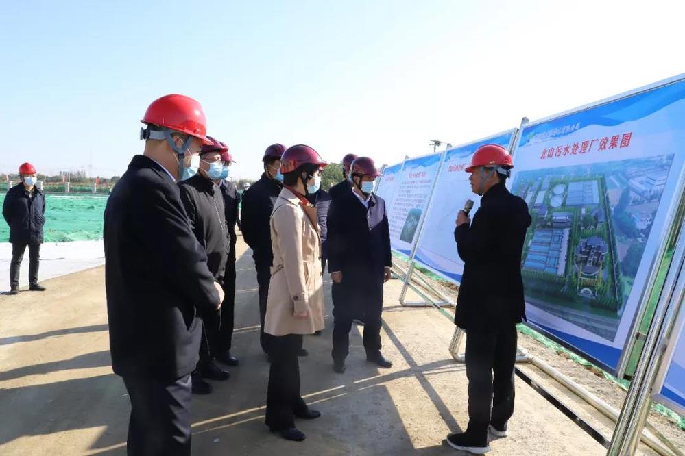 在北山污水處理廠一期工程施工現場,張寶娟聽取了城控集團關于項目建設進展的情況匯報,詳細了解了當前我市污水處理服務范圍、市區(qū)管網建設,以及污水處理工藝、污泥處置等方面情況,并對北山污水處理廠一期工程的建設提出了要求。