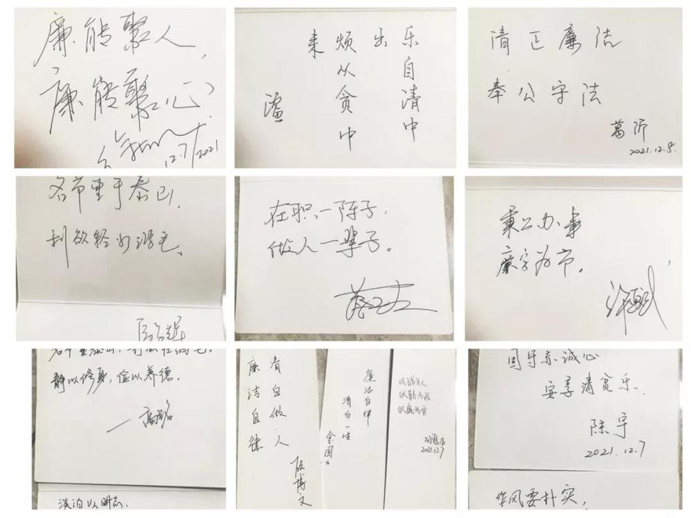 “以銅為鏡,可以正衣冠;以古為鏡,可以知興替;以人為鏡,可以明得失?!被顒幼詈螅蠹以诿餍牌蓄}寫廉潔寄語,互相交流各自廉政文化心得。大家表示在今后的工作中,將進(jìn)一步深化黨史學(xué)習(xí)教育,筑牢廉潔防線,在真學(xué)、真思、真干中把黨史學(xué)習(xí)教育成果轉(zhuǎn)化為工作實(shí)際成效,以更高的眼界、更強(qiáng)的本領(lǐng)、更好的素養(yǎng),助力公司高質(zhì)量發(fā)展。