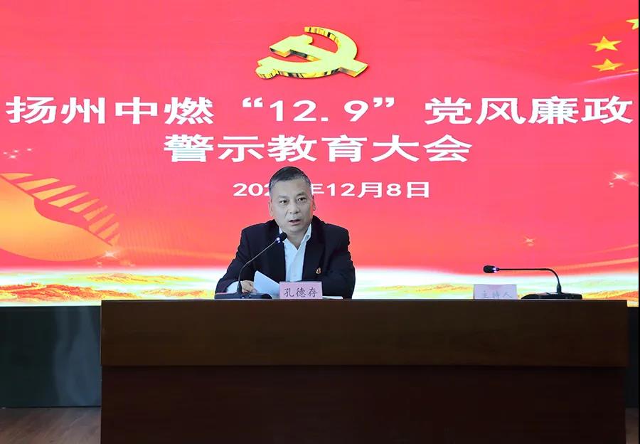 為進(jìn)一步貫徹落實(shí)全面從嚴(yán)治黨方針,強(qiáng)化黨員干部的廉潔自律意識(shí),推動(dòng)黨風(fēng)廉政建設(shè)向縱深發(fā)展,12月8日下午,揚(yáng)州中燃公司召開(kāi)黨風(fēng)廉政警示教育專題大會(huì)。公司領(lǐng)導(dǎo)班子全體成員、中層干部及關(guān)鍵崗位人員參加會(huì)議。