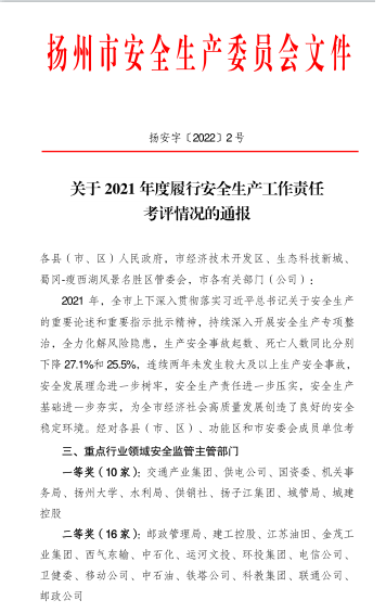 2021年,在市委市政府的正確領(lǐng)導(dǎo)下,城控集團(tuán)認(rèn)真貫徹落實(shí)習(xí)近平總書(shū)記關(guān)于安全生產(chǎn)重要論述,聚焦主體責(zé)任落實(shí),督查指導(dǎo)下屬企業(yè)開(kāi)展安全生產(chǎn)工作;聚焦“一把手”,抓住關(guān)鍵少數(shù),第一責(zé)任人責(zé)任落實(shí)落細(xì)落到位;聚焦三年專項(xiàng)整治,大力推進(jìn)風(fēng)險(xiǎn)防控隱患治理,從根本上提升本質(zhì)安全;聚焦安全生產(chǎn)教育培訓(xùn),強(qiáng)化安全意識(shí)、責(zé)任意識(shí),促進(jìn)業(yè)務(wù)技能和業(yè)務(wù)水平提升,全年安全生產(chǎn)形勢(shì)穩(wěn)定有序,為全市社會(huì)經(jīng)濟(jì)高質(zhì)量發(fā)展助力。被市安委會(huì)評(píng)定為2021年度履行安全生產(chǎn)工作責(zé)任先進(jìn)單位。