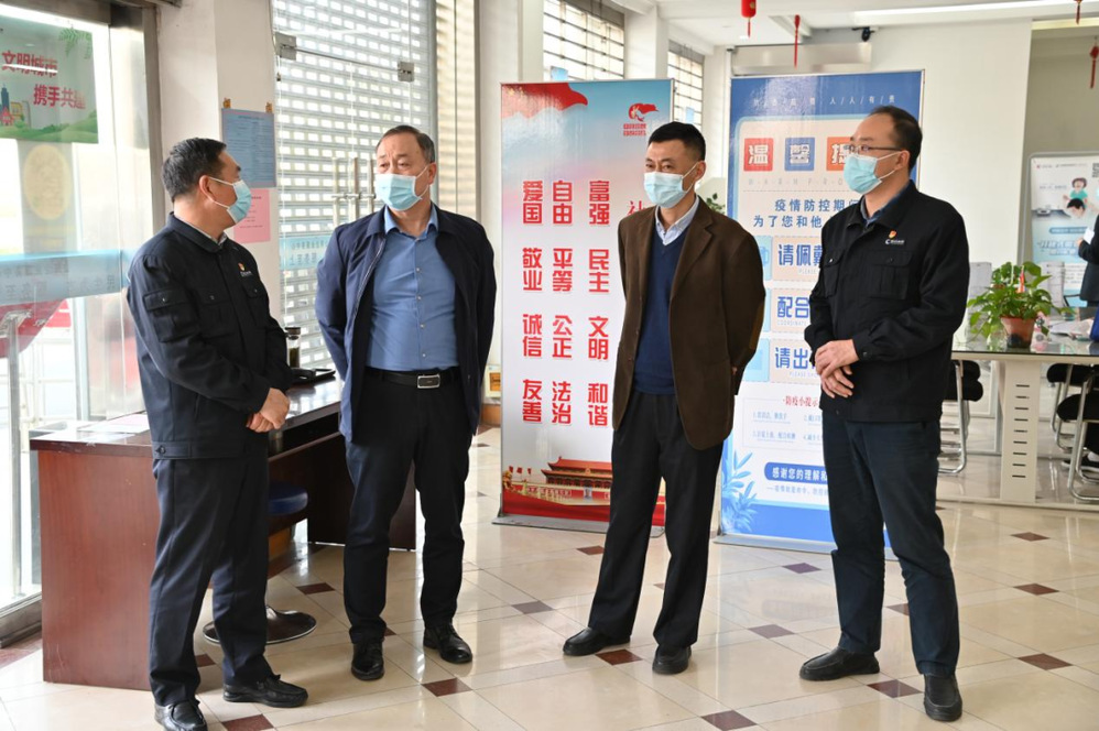 3月15日下午,市國(guó)資委副主任夏心忠?guī)ш?duì)檢查城控集團(tuán)下屬企業(yè)疫情防控工作落實(shí)情況。城控集團(tuán)副董事長(zhǎng)戚磊陪同檢查。