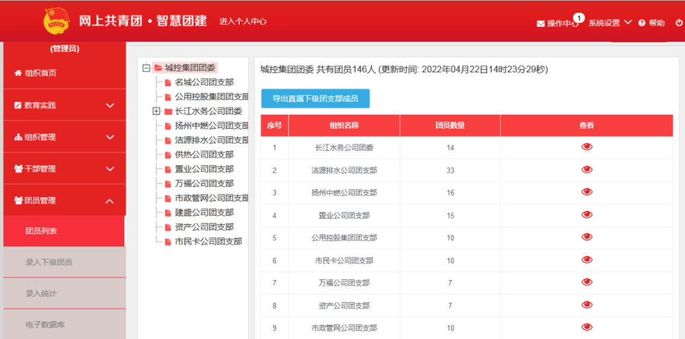 加強(qiáng)組織建設(shè),夯實團(tuán)青工作基礎(chǔ)。堅持“黨建帶團(tuán)建”工作機(jī)制,加強(qiáng)團(tuán)組織基礎(chǔ)建設(shè)。一是做好團(tuán)青摸底工作,對集團(tuán)系統(tǒng)內(nèi)青年工作情況做到心中有數(shù);二是明確專人做好智慧團(tuán)建系統(tǒng)錄入工作,確保團(tuán)青工作實現(xiàn)動態(tài)化管理;三是指導(dǎo)符合條件的子公司成立團(tuán)支部,并配齊配強(qiáng)了人員力量,不斷完善團(tuán)的組織體系。