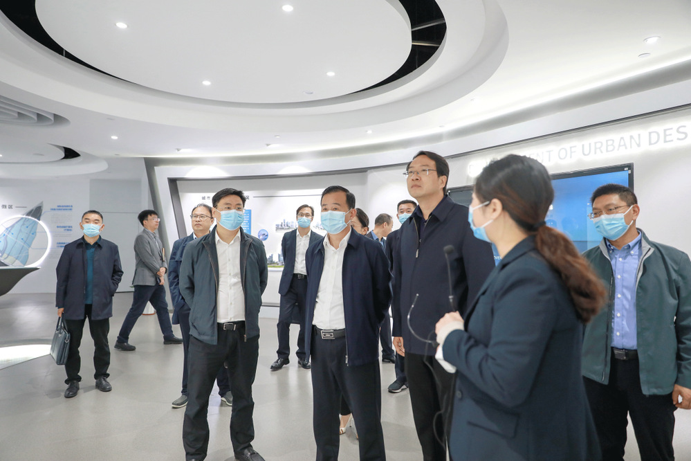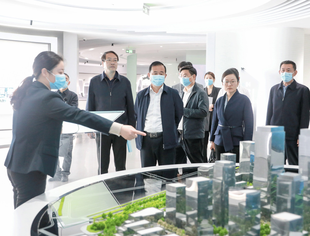 在生態(tài)科技新城城市展廳,葉善祥詳細(xì)了解生態(tài)科技新城的發(fā)展規(guī)劃,對生態(tài)科技新城高起點(diǎn)規(guī)劃、高標(biāo)準(zhǔn)建設(shè)、高品質(zhì)推進(jìn)揚(yáng)州新中心建設(shè)工作表示贊許。