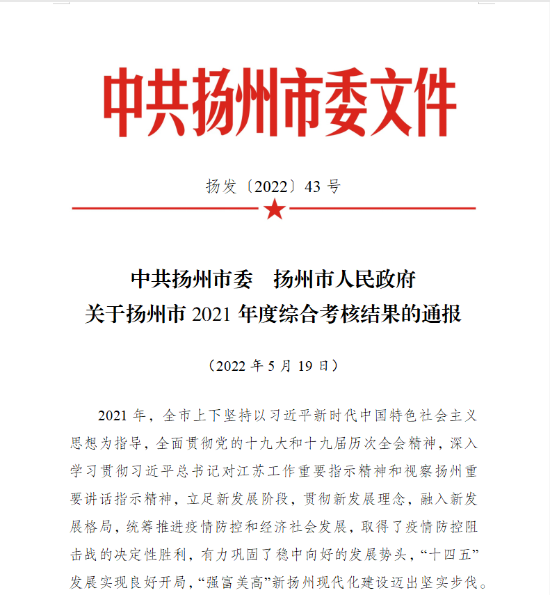 會議通報了揚州市2021年度綜合考核結(jié)果,城控集團再次被評為市級機關(guān)綜合考核“一等等次單位”,這是集團連續(xù)5次、歷史第8次獲得該項榮譽,充分肯定了城控集團在轉(zhuǎn)型發(fā)展道路上取得的成績和成效。