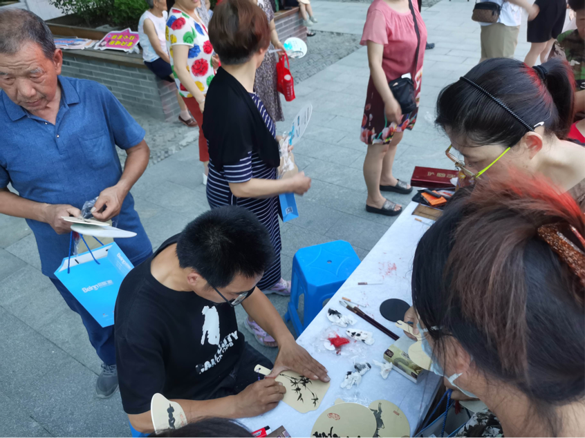 “我能交換這本書嗎?”“你需要在扇面上寫什么字?”,現(xiàn)場不斷傳來大家互相交流的話語,整個活動氛圍熱烈,周邊群眾積極參與。