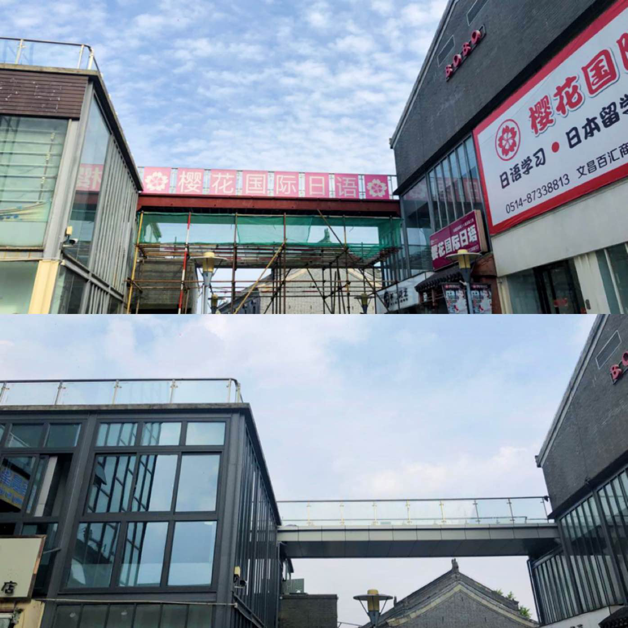 文昌百匯玻璃幕墻改造前后對(duì)比。