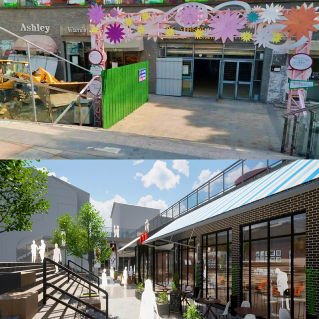 通運(yùn)商貿(mào)城外墻改造前后對(duì)比。