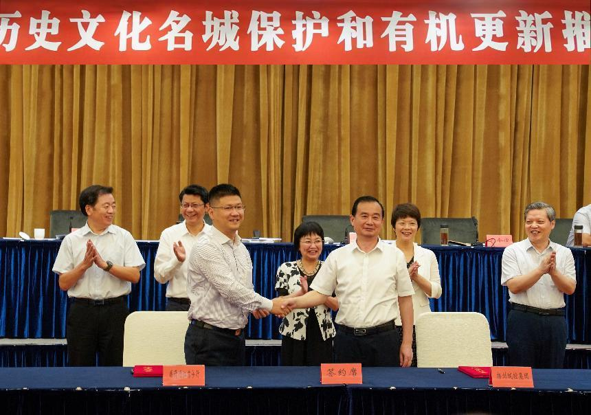 7月19日上午,市委、市政府召開揚(yáng)州歷史文化名城保護(hù)和有機(jī)更新推進(jìn)大會(huì)。市委書記張寶娟、省住房和城鄉(xiāng)建設(shè)廳廳長周嵐出席會(huì)議并講話,市長王進(jìn)健主持會(huì)議,市人大常委會(huì)主任孔令俊、國開行江蘇省分行副行長劉宗岐參加會(huì)議。會(huì)上,城控集團(tuán)與國家開發(fā)銀行江蘇省分行簽署戰(zhàn)略合作協(xié)議,城控集團(tuán)董事長葉善祥、國開行江蘇省分行二處處長姜方放分別代表雙方簽約。
