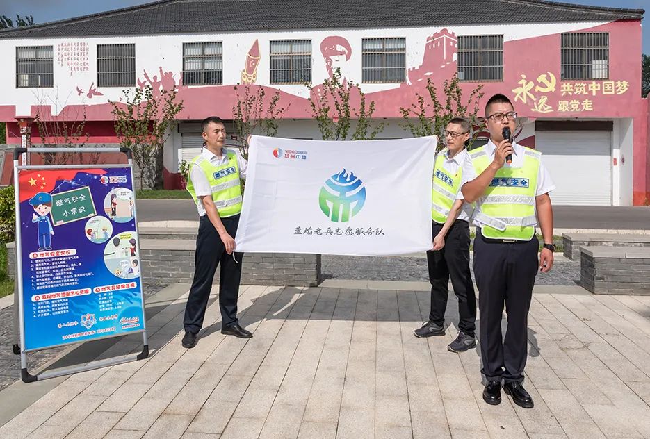 在展館廣場,雙方的退役老兵代表們面對黨旗行莊嚴(yán)軍禮,重唱鏗鏘軍歌,《我是一個兵》《打靶歸來》的高亢旋律響徹云霄,表達(dá)了退役老兵們退伍不褪色、永葆軍人本色,在平凡的崗位上為國家建設(shè)盡綿薄之力的豪邁心情。活動現(xiàn)場,“藍(lán)焰老兵”還開展了安全使用天然氣專題宣講,發(fā)放天然氣安全使用手冊。