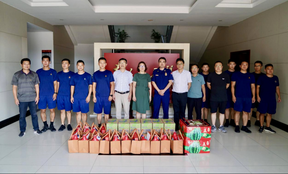 公司一行親切地慰問了消防隊(duì)員,參觀了消防隊(duì)員的訓(xùn)練場地,了解隊(duì)員們的日常訓(xùn)練及消防設(shè)施設(shè)備等運(yùn)行情況,認(rèn)真學(xué)習(xí)了在事故預(yù)防、隱患排查、搶險救援等方面的優(yōu)良經(jīng)驗(yàn)。消防隊(duì)員感謝大家對消防救援工作的關(guān)心和支持。保護(hù)人民群眾生命財(cái)產(chǎn)安全是消防救援隊(duì)伍的神圣職責(zé),他們一定不負(fù)人民重托,戰(zhàn)高溫、斗酷暑,始終奮戰(zhàn)在搶險救援第一線,為群眾安居樂業(yè)保駕護(hù)航。