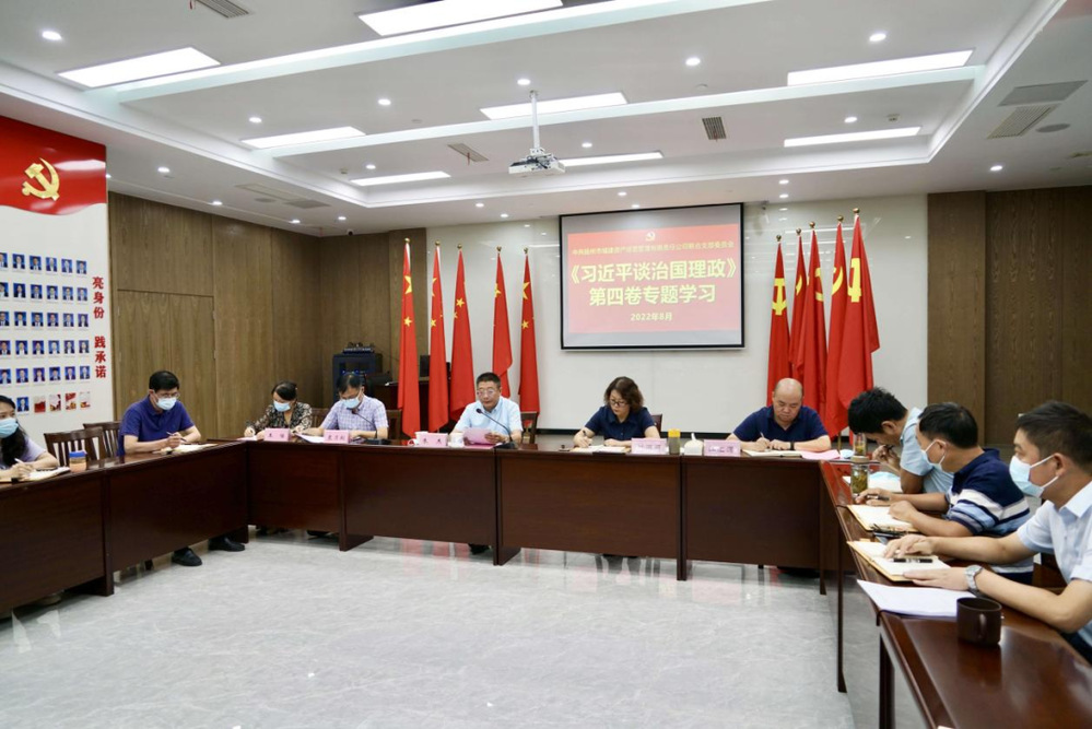 為進一步學(xué)懂弄通做實習(xí)近平新時代中國特色社會主義思想,推動黨的創(chuàng)新理論在全公司上下落地見效,8月31日,資產(chǎn)公司聯(lián)合黨支部召開支委班子理論學(xué)習(xí)組(擴大)學(xué)習(xí)會議,專題學(xué)習(xí)《習(xí)近平談治國理政》第四卷。公司聯(lián)合黨支部支委班子成員參加學(xué)習(xí)會議,并結(jié)合各自分管工作和學(xué)習(xí)情況作主題交流發(fā)言。黨小組組長和各部門、物業(yè)公司負責(zé)人列席學(xué)習(xí)會議。