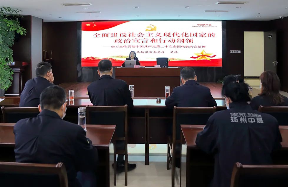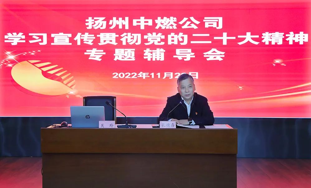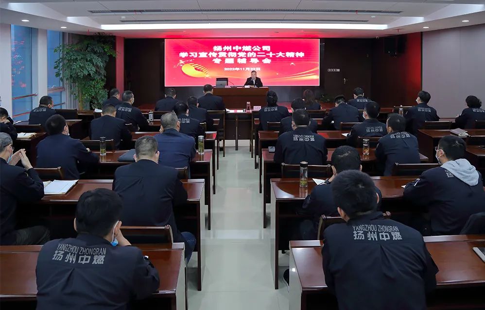 為深入學(xué)習(xí)宣傳貫徹黨的二十大精神,把揚(yáng)州中燃公司廣大黨員、干部員工的思想統(tǒng)一到黨的二十大精神上來(lái),把力量凝聚到推動(dòng)揚(yáng)州中燃公司轉(zhuǎn)型跨越發(fā)展的方向上來(lái),2022年11月22日下午,揚(yáng)州中燃公司黨委組織開(kāi)展學(xué)習(xí)宣傳貫徹黨的二十大精神專(zhuān)題輔導(dǎo)會(huì)。會(huì)議傳達(dá)學(xué)習(xí)了《中共中央關(guān)于認(rèn)真學(xué)習(xí)宣傳貫徹黨的二十大精神的決定》,對(duì)全公司學(xué)習(xí)宣貫黨的二十大精神進(jìn)行動(dòng)員部署,邀請(qǐng)市委黨校吳玲老師宣講黨的二十大精神。公司領(lǐng)導(dǎo)班子成員,全體中層干部參加會(huì)議。