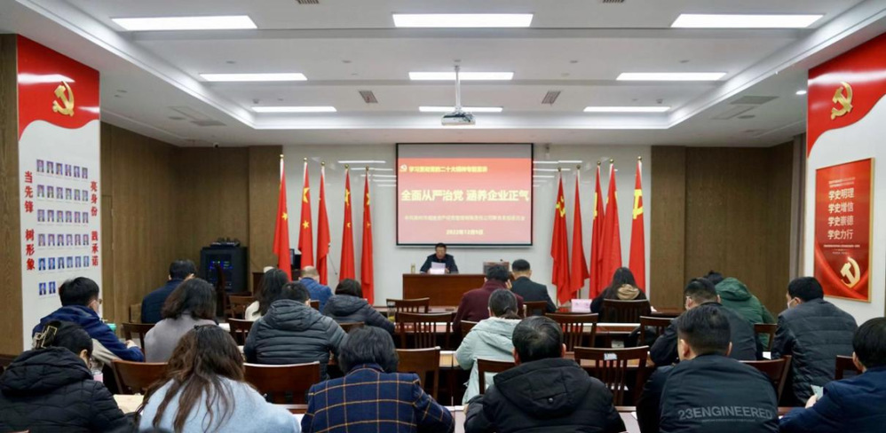 為深入學(xué)習(xí)貫徹黨的二十大精神,堅(jiān)定不移推進(jìn)全面從嚴(yán)治黨向縱深發(fā)展,根據(jù)公司學(xué)習(xí)宣傳貫徹黨的二十大精神工作計(jì)劃以及“12·9”黨風(fēng)廉政教育日宣傳教育活動(dòng)方案,12月9日下午,公司聯(lián)合黨支部書記、董事長以《全面從嚴(yán)治黨 涵養(yǎng)企業(yè)正氣》為題,開展了學(xué)習(xí)貫徹黨的二十大精神專題宣講。公司全體黨員、中層干部參加了會(huì)議。