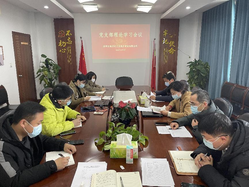 12月14日上午,古城保護公司召開黨支部(擴大)理論學習會。公司黨支部書記、董事長梁玉榮主持會議并講話。公司全體員工參加會議。