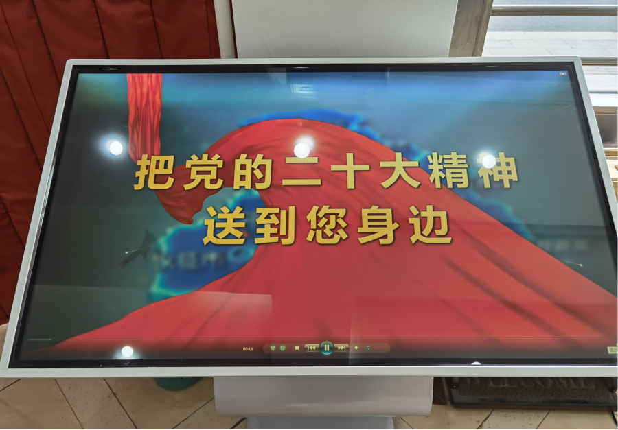 各子公司、生產(chǎn)廠(站)和營業(yè)廳利用LED顯示屏、大廳電視屏幕滾動播放市文明辦錄制的《關(guān)鍵詞:大會主題》等8個視頻,把黨的二十大精神送到職工身邊。