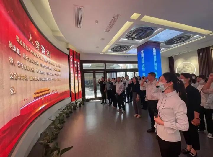 活動(dòng)最后,在黨旗前,全體黨員重溫入黨誓詞。