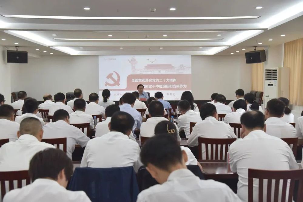 張思忠以《全面貫徹黨的二十大精神 在創(chuàng)新實(shí)干中展現(xiàn)新?lián)?dāng)新作為》為題,從“為何黨員干部必須要有擔(dān)當(dāng)、衡量黨員干部敢于擔(dān)當(dāng)?shù)臉?biāo)準(zhǔn)、用實(shí)際行動(dòng)詮釋‘擔(dān)當(dāng)’”三個(gè)方面進(jìn)行了闡述,他結(jié)合長(zhǎng)江水務(wù)實(shí)際,既分析了問(wèn)題,又提出了要求,為長(zhǎng)江水務(wù)下一步發(fā)展指明了方向。
