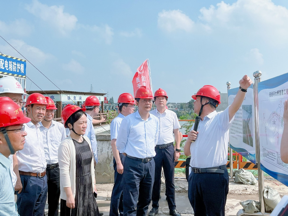 在施工現(xiàn)場(chǎng),王進(jìn)健一行聽(tīng)取了壁虎河大橋工程、運(yùn)河路北延工程施工進(jìn)度及存在問(wèn)題的匯報(bào)。他強(qiáng)調(diào),城控集團(tuán)要對(duì)照年度目標(biāo)計(jì)劃要求,強(qiáng)化責(zé)任落實(shí),明確目標(biāo)節(jié)點(diǎn),持續(xù)攻堅(jiān)克難,在保證安全質(zhì)量的前提下,全力推動(dòng)項(xiàng)目建設(shè)提速增效,確保項(xiàng)目及早建成投用、早日發(fā)揮效益。