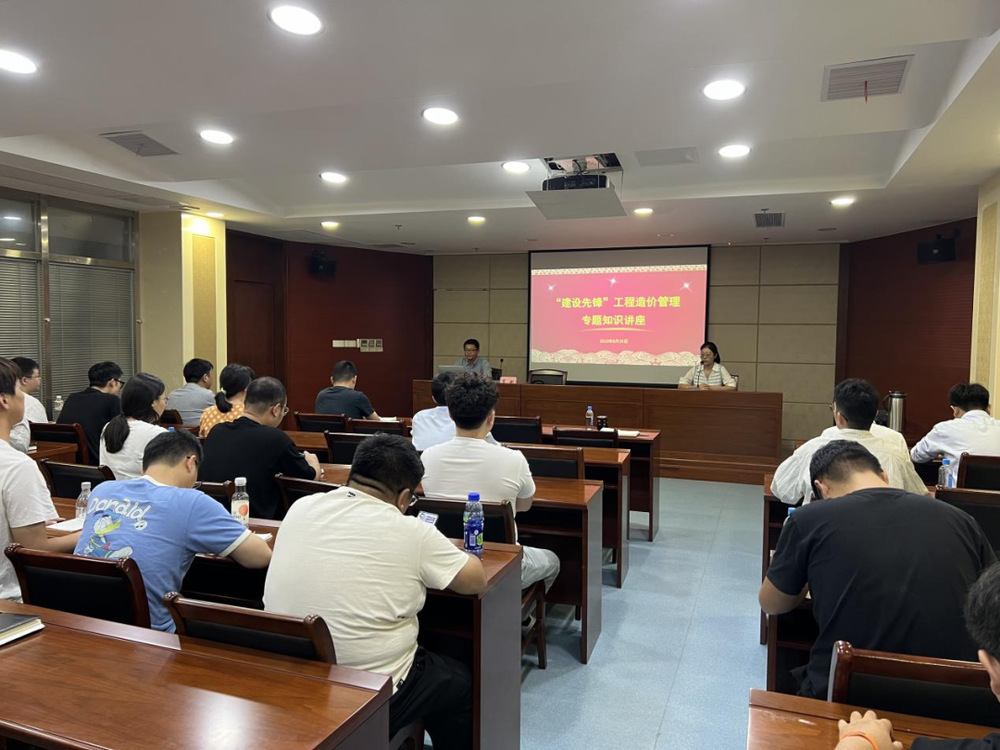 為進一步推動公司黨支部“建設(shè)先鋒”黨建品牌創(chuàng)建工作與業(yè)務(wù)工作融合互促,提高公司青年職工專業(yè)技術(shù)業(yè)務(wù)能力,8月25日上午,根據(jù)黨支部安排,置業(yè)公司審計部特邀揚州市建設(shè)工程造價專家在報告廳開展了一場專題培訓(xùn),重點圍繞工程造價理論知識和現(xiàn)場投資控制辦法進行講解。置業(yè)公司全體專業(yè)技術(shù)人員參加培訓(xùn)。