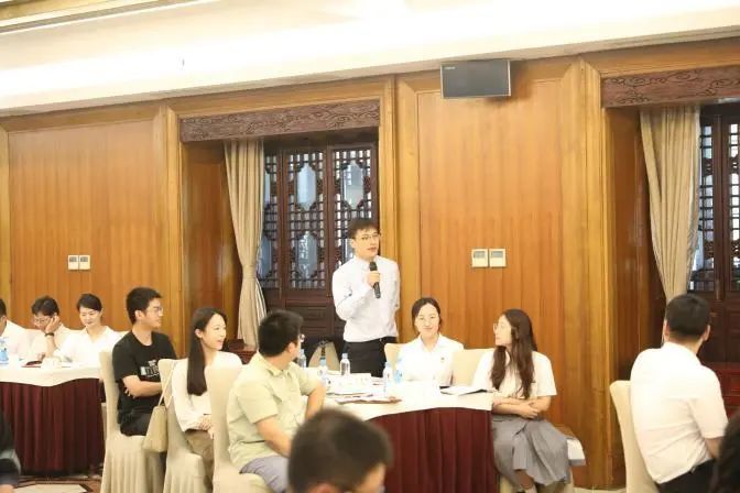 在之后的我點你答和分組討論環(huán)節(jié),大家圍繞文旅融合發(fā)展、街區(qū)運營、綠色低碳新業(yè)態(tài)、大運河十里外灘和小秦淮河項目建設(shè)等話題展開討論,并就推動集團及自己所在企業(yè)的高質(zhì)量發(fā)展獻出妙計良策,現(xiàn)場氛圍活躍,與會青年代表踴躍發(fā)言,紛紛提出自己的看法。集團領(lǐng)導(dǎo)針對青年代表的精彩發(fā)言,現(xiàn)場與青年代表們深入交流互動。